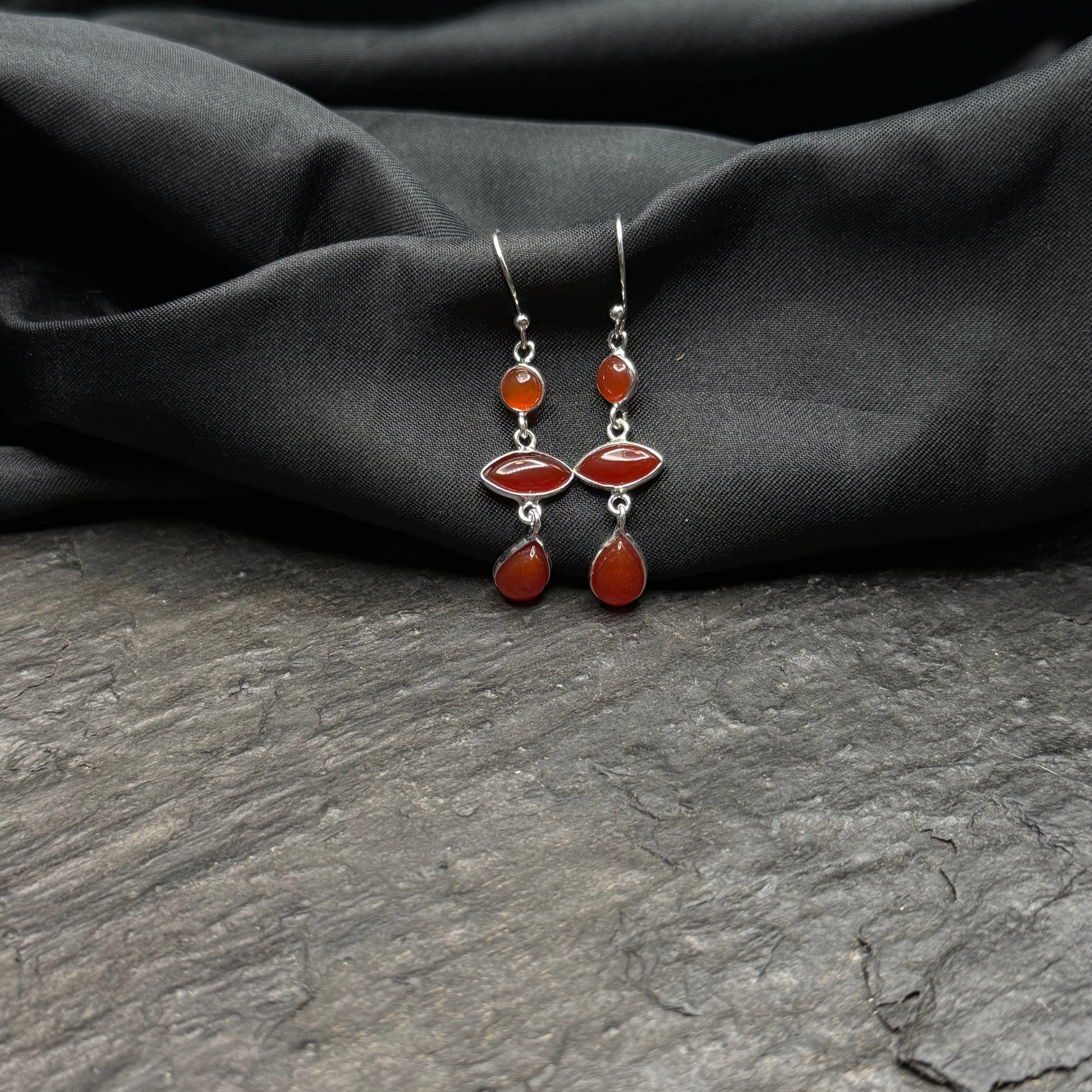 Carneol-Ohrhänger Dreiteilig mit Silberfassung – Verspielte Eleganz