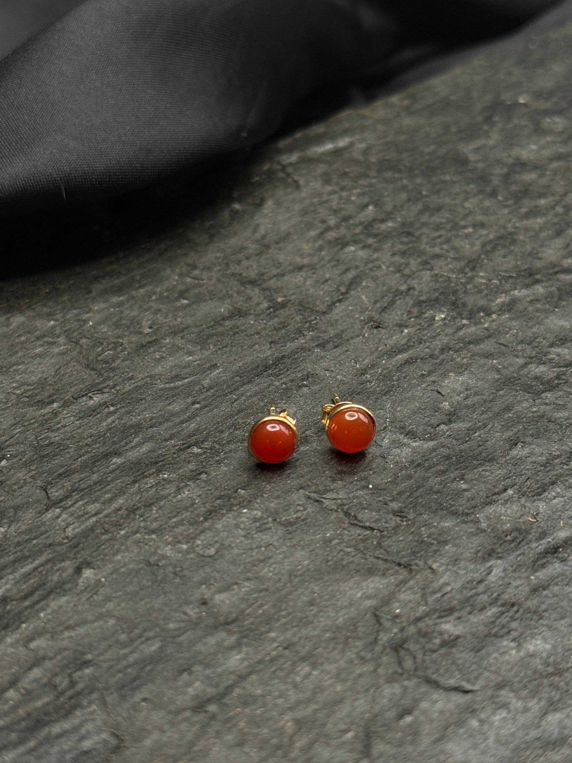 Diese bezaubernden ovalen Carneol-Ohrstecker vereinen die warme Ausstrahlung des Edelsteins mit der luxuriösen Optik vergoldeter Silberfassung – ein perfektes Zusammenspiel von Natur und Handwerkskunst.