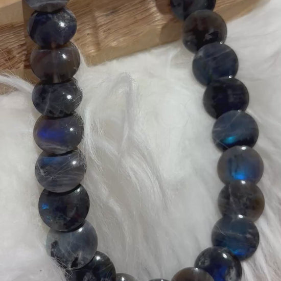 Labradorit-Linsen-Kette AAA+, schimmernd blau