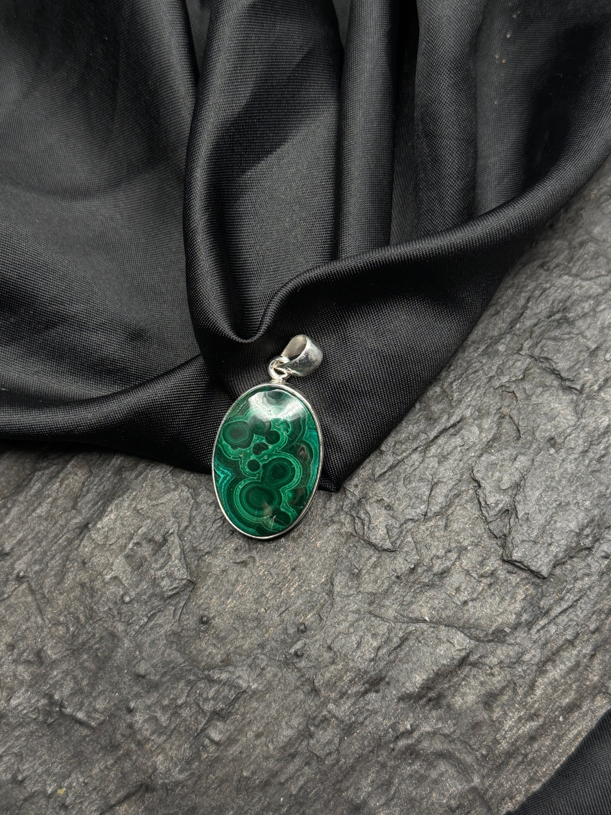 Dieser Malachit-Anhänger ist perfekt als Geschenk für jeden Anlass und ein wunderbares Schmuckstück für Menschen, die intensive grüne Edelsteine schätzen!